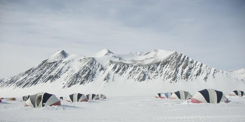 Gunung Vinson Massif di Benua Antartika.Dua pendaki perempuan asal Indonesia berhasil mengibarkan bendera Indonesia di puncak Gunung Vinson Massif, Benua Antartika.