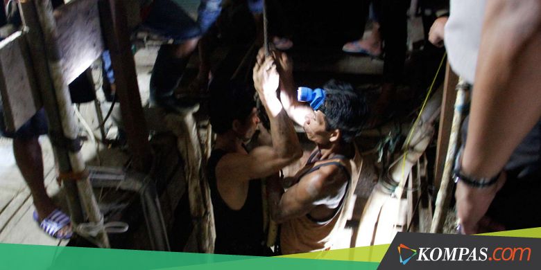 "Saat kami berada di dalam, sumber cahaya hanya datang dari senter kepala, dan ada satu bola lampu listrik di atas pantongan," kata Karno.