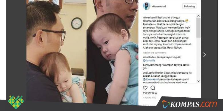 BANDUNG, KOMPAS.com - Wali Kota Bandung Ridwan Kamil mengunggah fotonya tengah menggendong seorang bayi di akun Instagram pribadinya @ridwankamil, Selasa (11/7/2017).