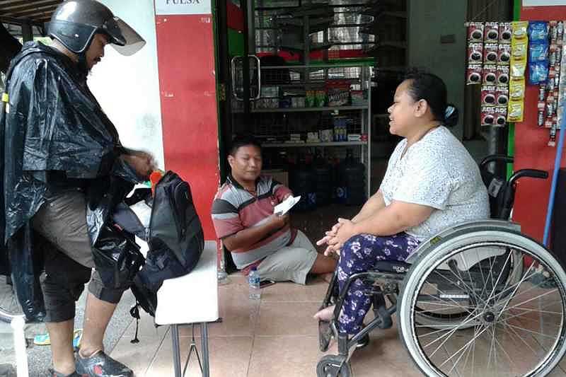 GIANYAR, BALIPOST.com – Bajuri (45), dan Ni Komang Ayu Manik merupakan salah satu pasangan suami istri (pasutri), yang bisa menikmati hidup dengan bahagia meski sama-sama mengalami keterbatasan fisik. Pasutri ini sama-sama mengalami cacat fisik pada bagian kaki, namun bisa mandiri dengan cara berjualan.