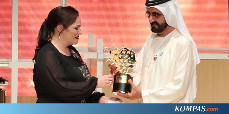 Andria Zafirakou (39) mendapatkan penghargaan Global Teacher Prize yang diselenggarakan di Dubai, Uni Emirat Arab, Minggu (18/3/2018).