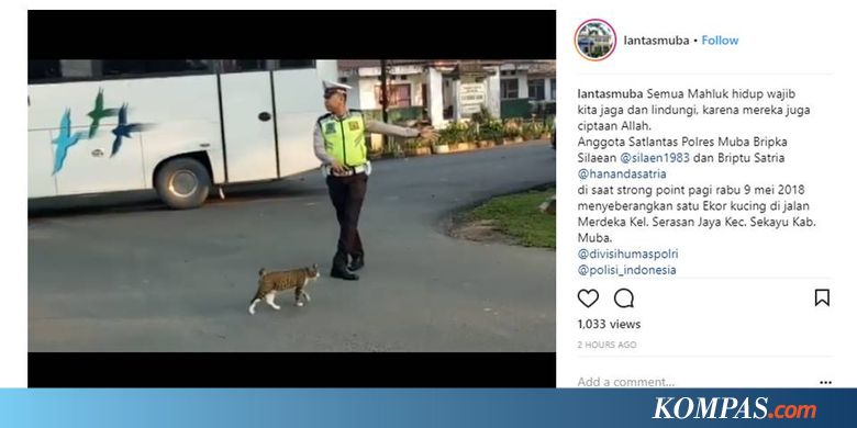 KOMPAS.com - Beberapa hari lalu, video yang menunjukkan seorang polisi di Musi Banyuasin, Sumatera Selatan, tengah menyeberangkan seekor kucing, viral di media sosial. Kisah ini mengingatkan cerita-cerita sejumlah polisi lainnya yang pernah viral.